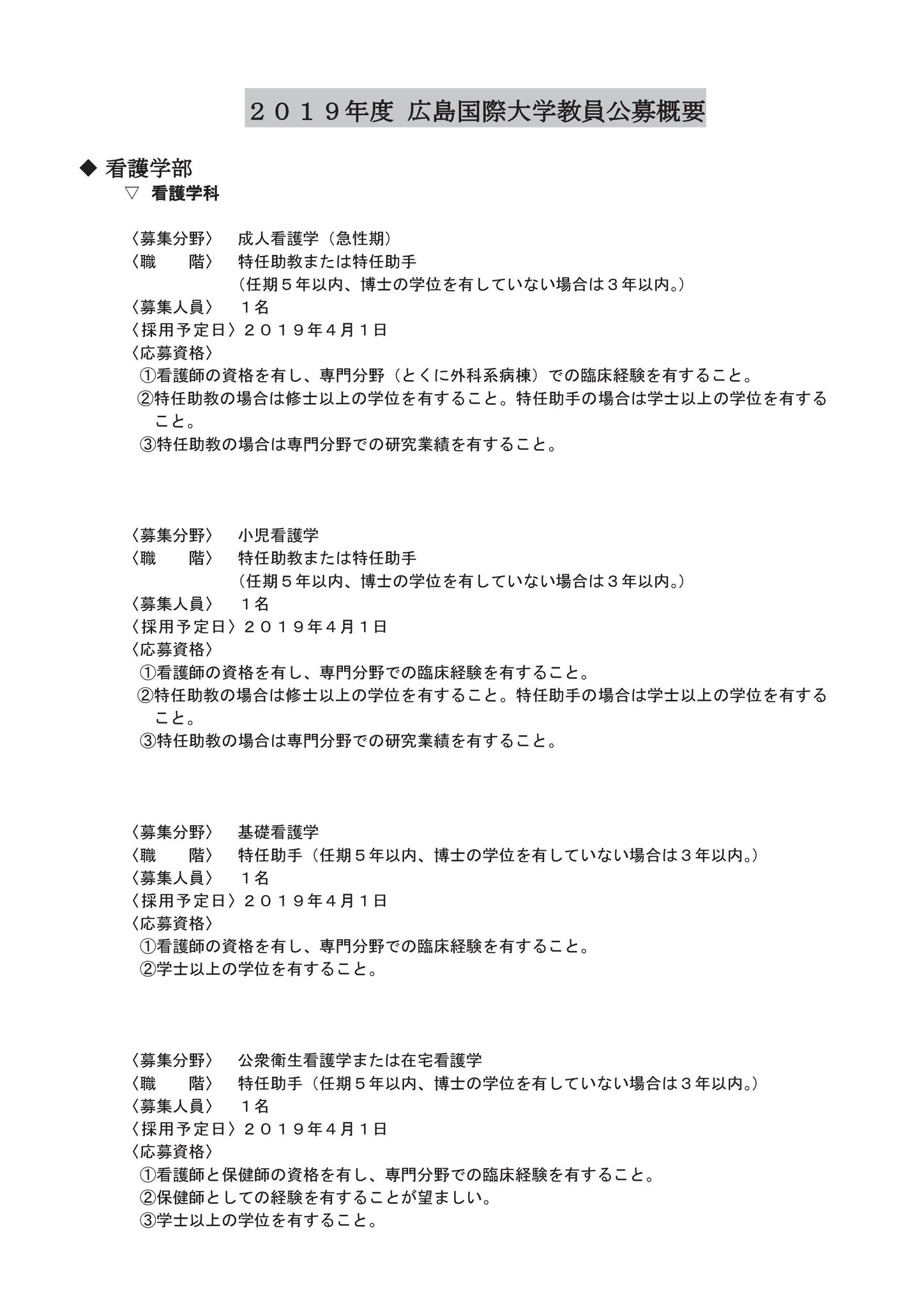 広島国際大学 公式 على تويتر お知らせ 2019年度広島国際大学教員公募について 1月8日付 応募期限 2019年1月21日 月 必着 教育職員公募詳細 Https T Co Fvkhyplzmz 広島国際大学 看護学科 心理学科 教員公募