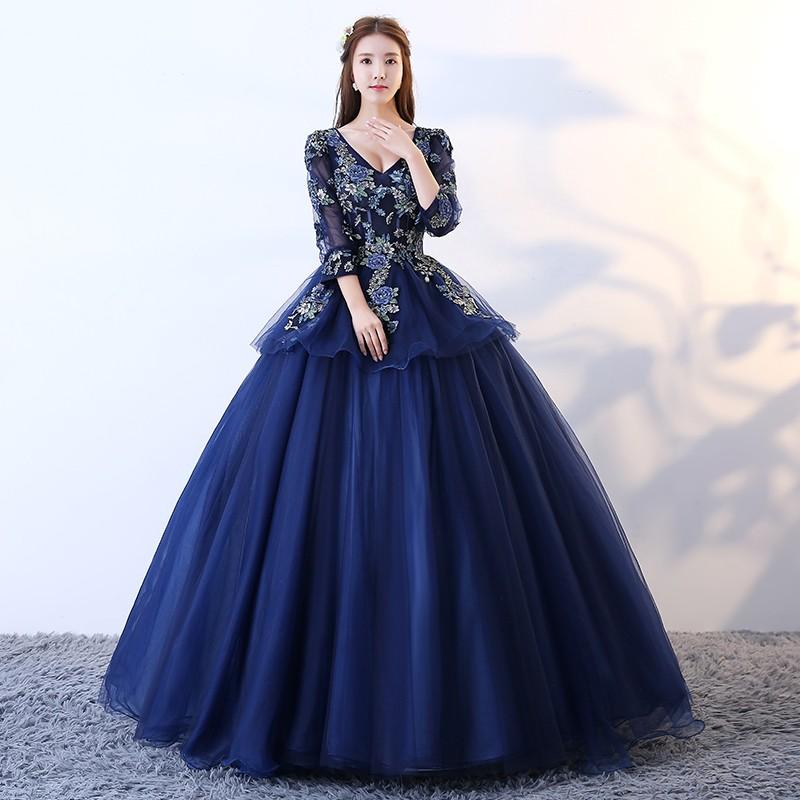 楽天市場 ロングドレス 演奏会 長袖 カラードレス ネイビー 青 プリンセスライン ウェディングドレス 結婚式 フォーマルドレス 二次会 カクテルドレス パーティー 披露宴 発表会 ステージ衣装 小きいサイズ 大きいサイズ 渋谷ウイングス