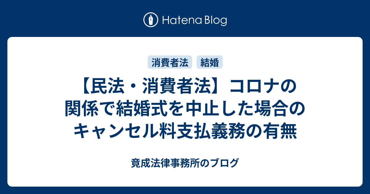 民法 消費者法 コロナの関係で結婚式を中止した場合のキャンセル料支払義務の有無 竟成法律事務所のブログ