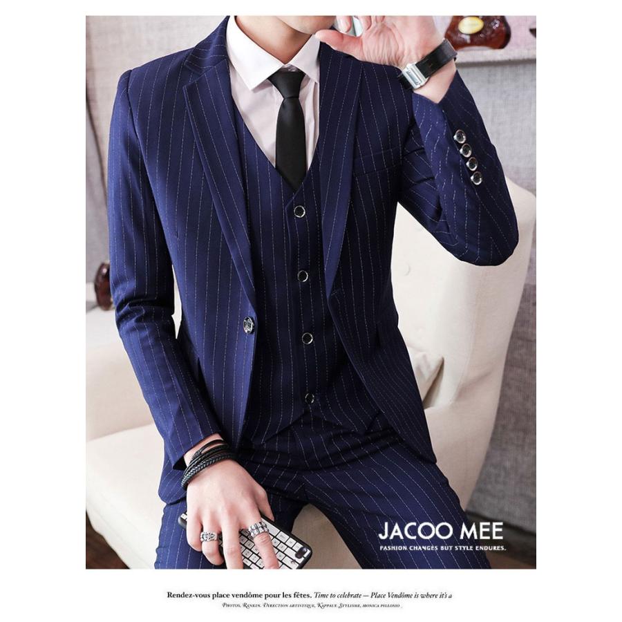 スリーピース メンズ ビジネススーツ ストライプ ブレザー 3ピーススーツ 結婚式 カジュアルスーツ 3点セット セットアップ ベスト付き 通勤 送料無料 Jg Bwx112 Jacoo Mee Store 通販 Yahoo ショッピング