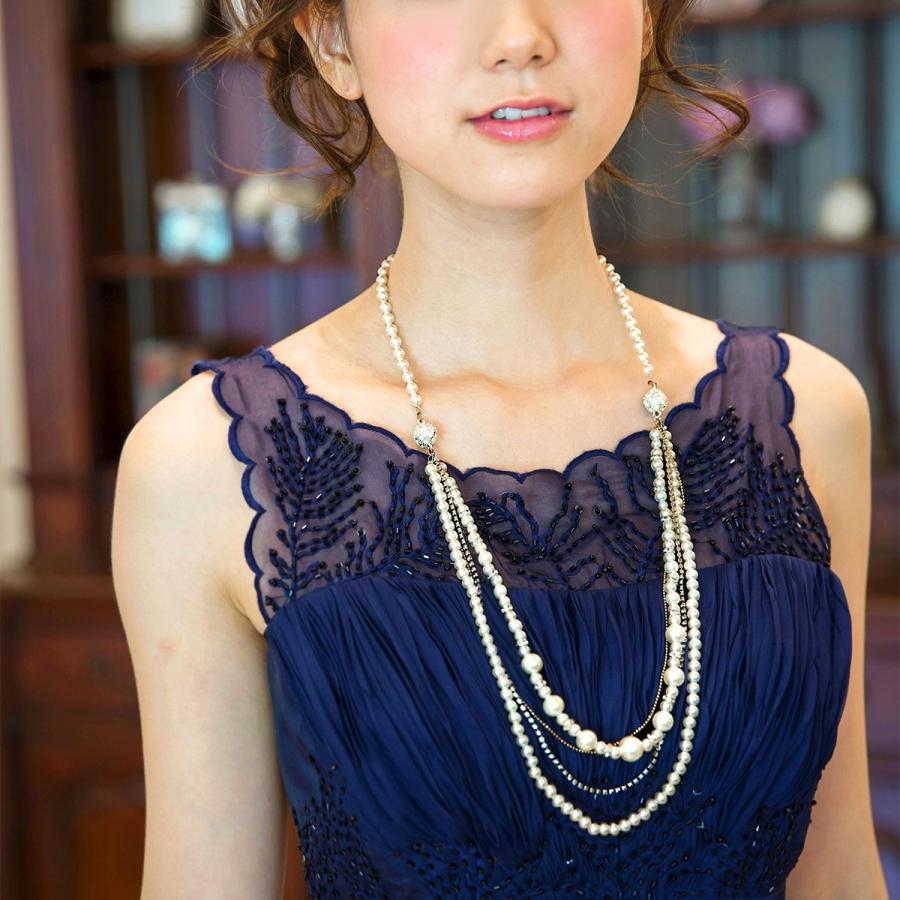 楽天市場 結婚式 アクセサリー パール イミテーションパール 二次会 お呼ばれ パーティー アクセ 三連 ネックレス パールネックレス ロングパール ネックレス ロングネックレス パーティードレス通販twinklegirls
