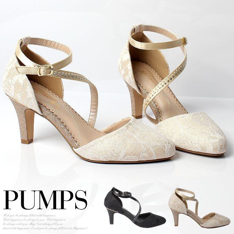 パンプス 結婚式 アンクルストラップ パーティーパンプス レース 黒 ベージュ ポインテッドトゥパンプス パーティーパンプス 痛くない Cps2212s パーティードレス通販 Claire 通販 Yahoo ショッピング