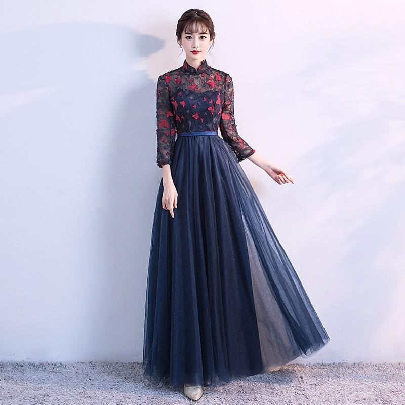 カラードレス ロング 演奏会 紺 安い 長袖 ウエディングドレス 二次会 パーティードレス 結婚式 二次会 カクテルドレス 披露宴 発表会 Ckxswlf185 Starwedding 通販 Yahoo ショッピング