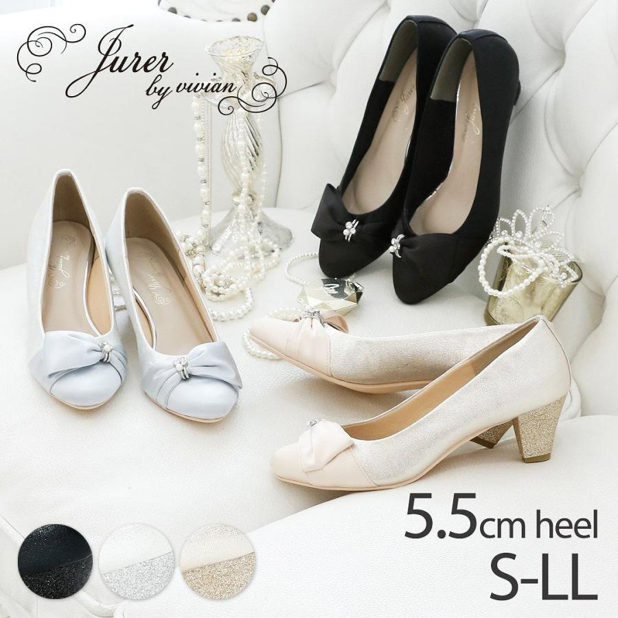 Jurer パンプス 痛くない レディース ビジューリボン グリッターパーティー 結婚式 二次会 5 5cmヒール ブラック ベージュ 秋 J3102i Vivian Collection 21 26cm対応 通販 Yahoo ショッピング