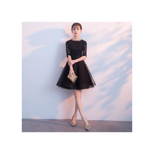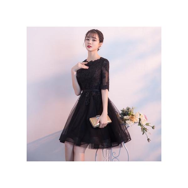 ドレス ミニ ミディアム 結婚式 二次会 パーティードレス 黒 ワインレッド 白 レッド 秋 パーティードレス 黒 パーティードレス ドレス